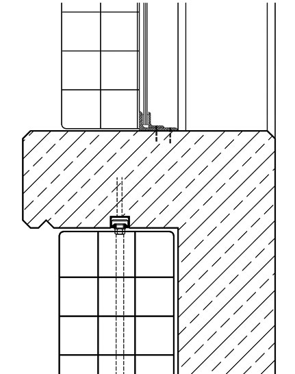 Detail der Befestigung der Gabionen bzw. der Verglasung